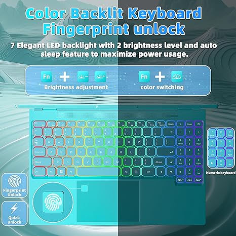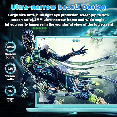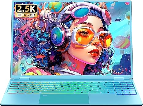 16" Blue Laptop,Ultra-Narrow bezels 2.5K QHD(2560x1600) IPS,Celeron N5095,16G RAM 256GB/512GB/1TB SSD, Color Backlit KB, Fingerprint,Type-C/HDMI/WiFi/HDD Expand, Win 11 PC for Business Study (Blue)