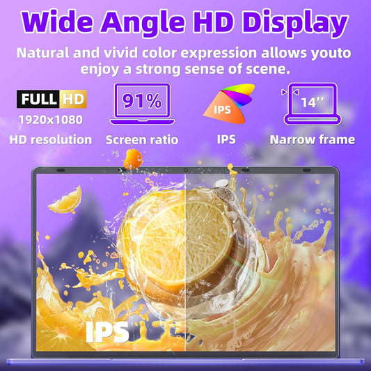 14" Purple Laptop, Win 11 Pro/Office 2019, Celeron N5105 (Up to 2.9GHz), 16GB RAM, 512GB SSD, FHD IPS Display, Ultra-Thin, Portable, Convertible 180°. USB, HDMI, WIFI - Style meets Performance!